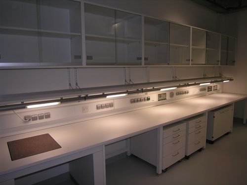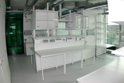 Als zentrale Sonderbereiche werden ein NMR-Labor und ein elektronenmikroskopisches Labor, jeweils mit zugeordneten Präparationsräumen, eingerichtet. Die Versorgung der Arbeitsgruppen erfolgt über ein zentrales Chemikalienlager.